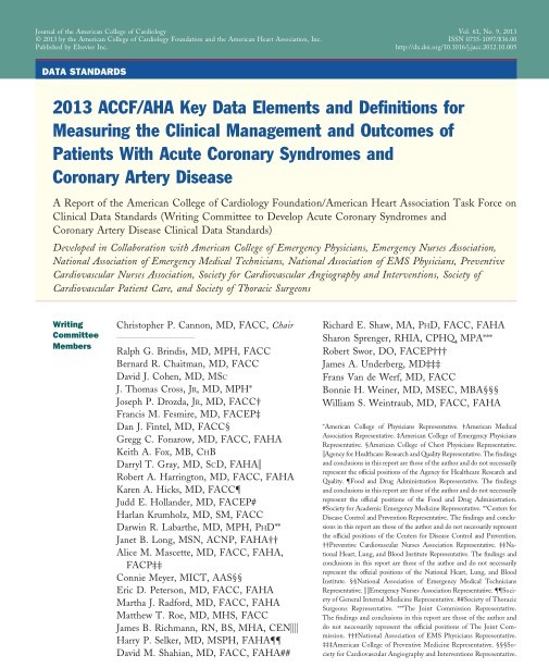 2013ACCF/AHA急性冠状动脉综合征和冠状动脉疾病患者的临床管理和转归关键数据元素和定义