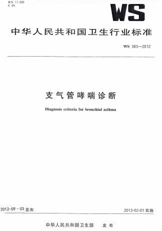 全文链接: 支气管哮喘诊断(WS+383-2012).pdf