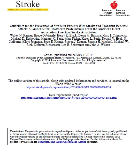 英文标题:Guidelines for the Prevention of Stroke in Patients With Stroke and Transient Ischemic Attack
