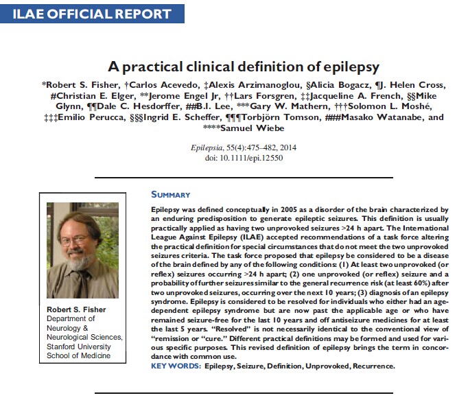 2014 国际抗癫痫联盟:癫痫实用性定义发布日期:2014-04-14英文标题:A practical clinical definition of epilepsy.制 定 者:国际抗癫痫联盟(ILAE,International League Against Epilepsy)出 处:Epilepsia 2014 Apr 14 指南下载: