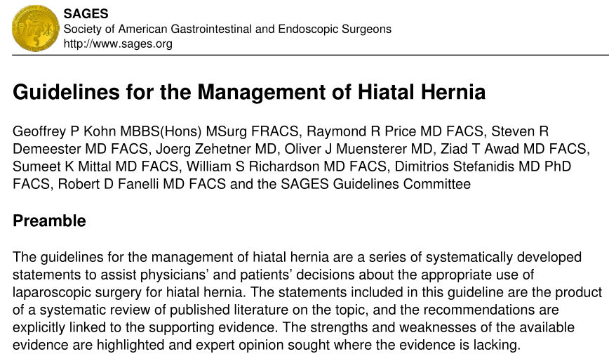 英文标题:Guidelines for the Management of Hiatal Hernia