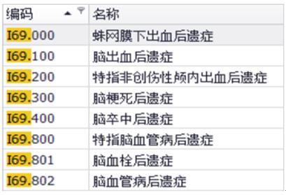 注意:后遗症的类目(B90-B94,E64,E68,G09,I69,T90—T98,Y85-Y89)是用来指出不复存在的情况是当前正在治疗疾病的原因。而主要编码要选择正在治疗的疾病,后遗症编码可作为附加编码