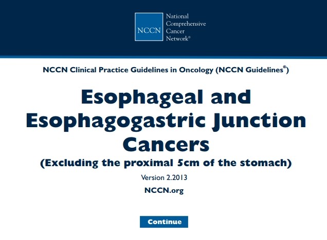 指南下载:NCCN临床实践指南:食道癌和胃食管交界处癌(2013.V2).pdf