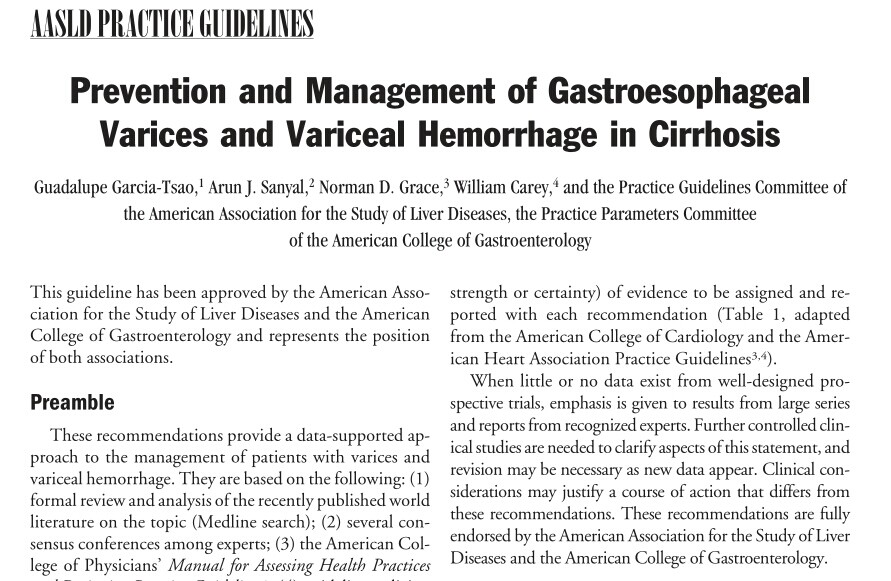 2007AASLD/ACG肝硬化食管胃底静脉曲张和静脉曲张出血的预防和管理