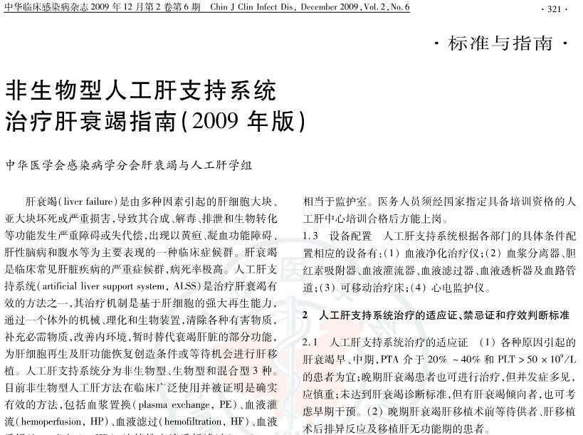 2009非生物型人工肝支持系统治疗肝衰竭指南