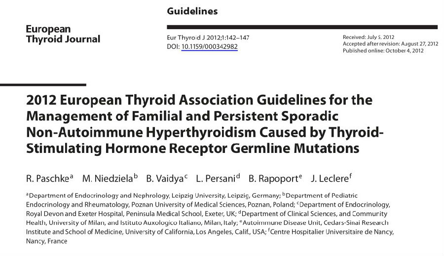2012ETA促甲状腺素受体突变导致的家族性以及持续性、散发性、非自身免疫性甲状腺功能亢进的诊治指南