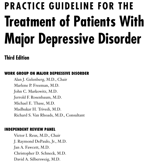 2010APA重性抑郁障碍的治疗指南(第三版)