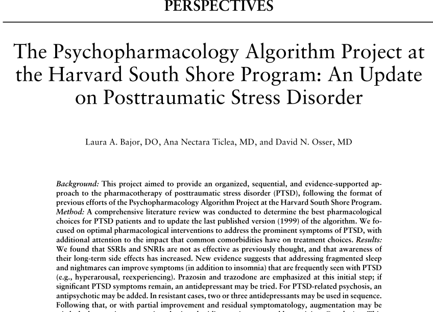哈佛南岸计划之精神药理学规范( PAPHSS):创伤后应激障碍临床药物治疗指南