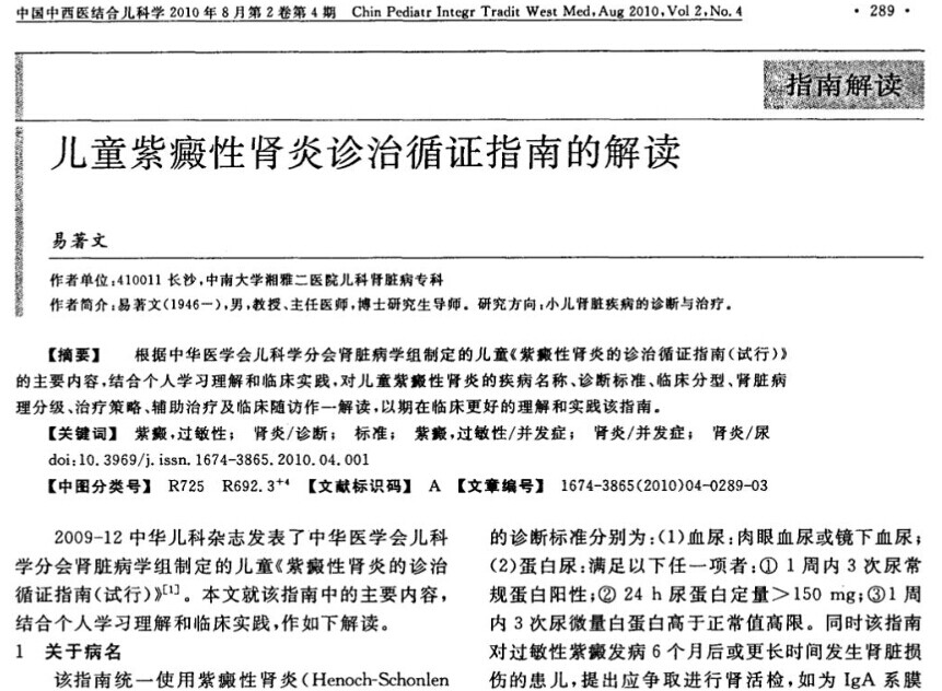 解读下载:儿童紫癜性肾炎诊治询证指南的解读.pdf
