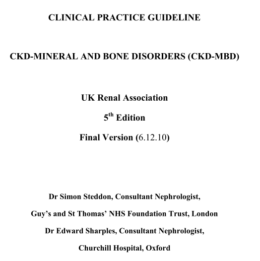 2010RA临床实践指南:慢性肾脏病矿物质和骨代谢紊乱指南