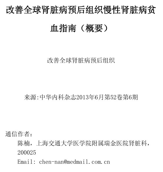 对应指南:2012KDIGO慢性肾脏病贫血指南.pdf