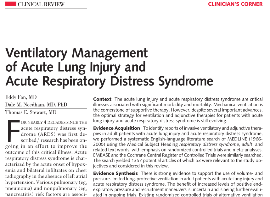 英文标题:Ventilatory Management of Acute Lung Injury and Acute Respiratory Distress Syndrome