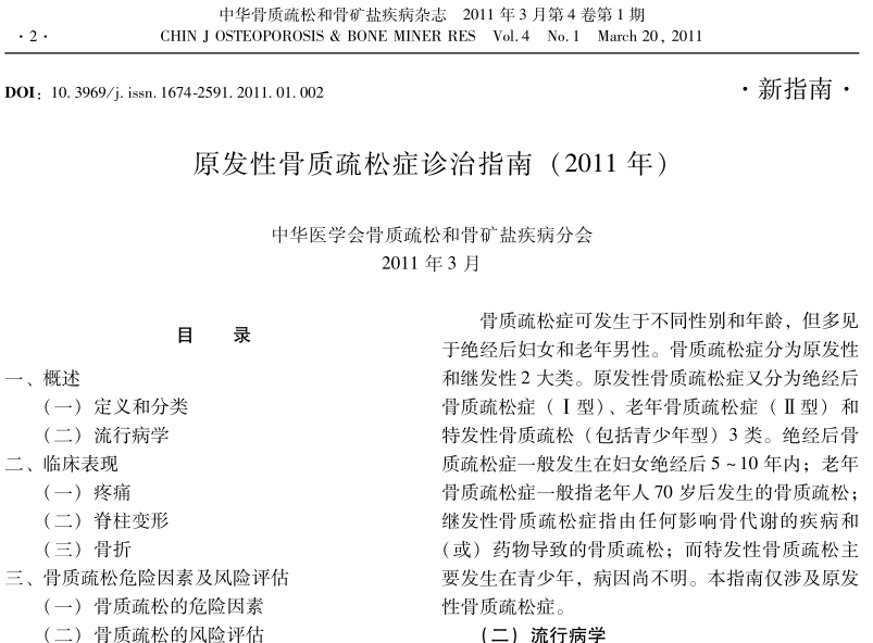 原发性骨质疏松症诊治指南(2011年)