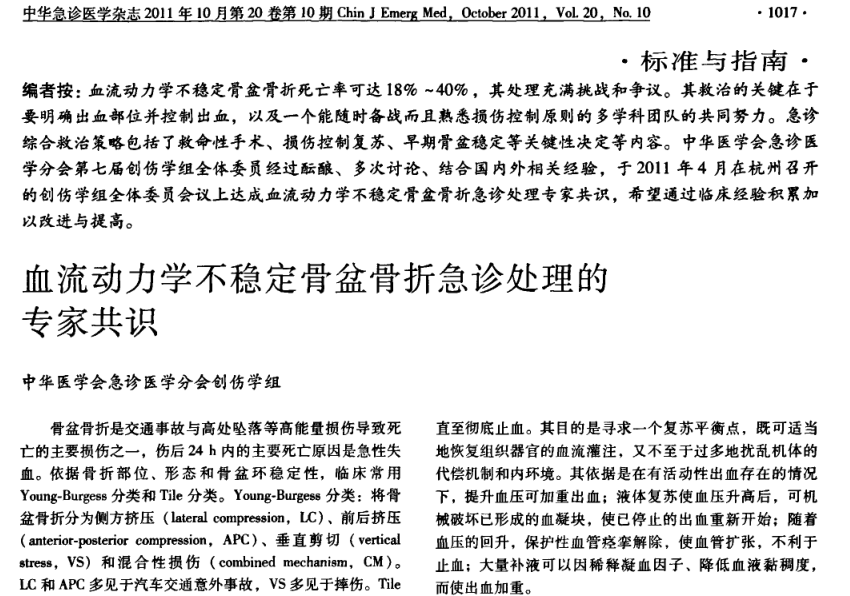2011血流动力学不稳定骨盆骨折急诊处理的专家共识