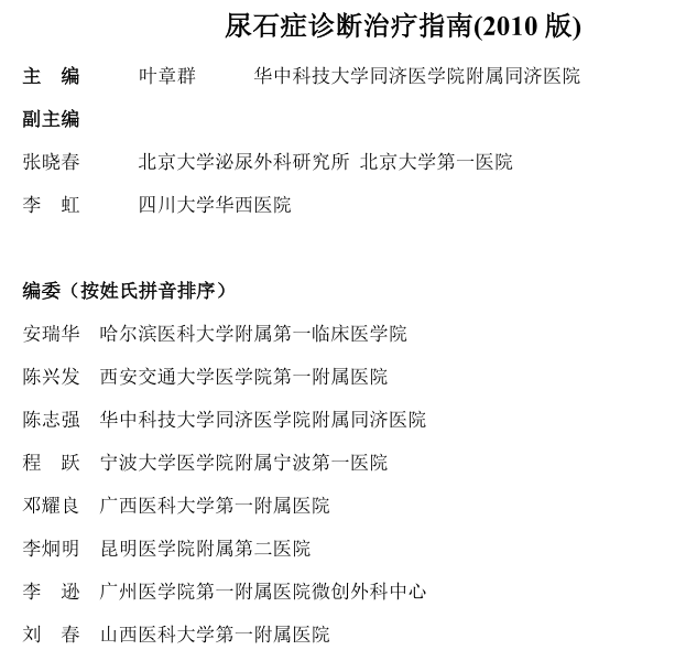 指南下载: 尿石症诊断治疗指南2010年版.pdf