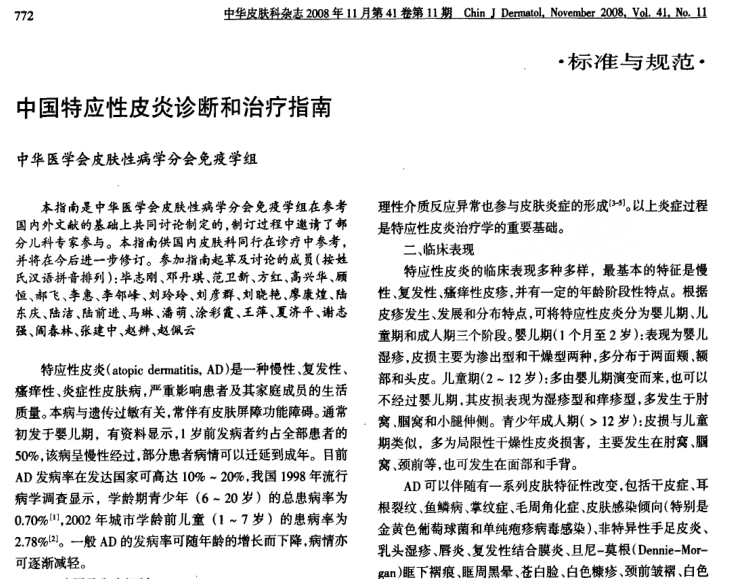 指南下载:2008中国特应性皮炎诊断和治疗指南.pdf