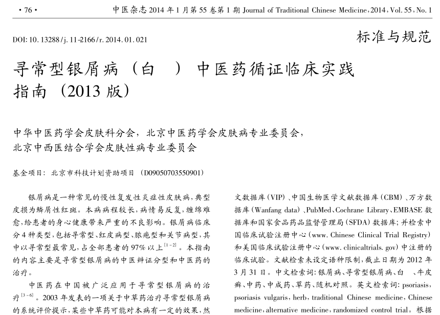 寻常型银屑病(白疕)中医药循证实践指南(2013年版)