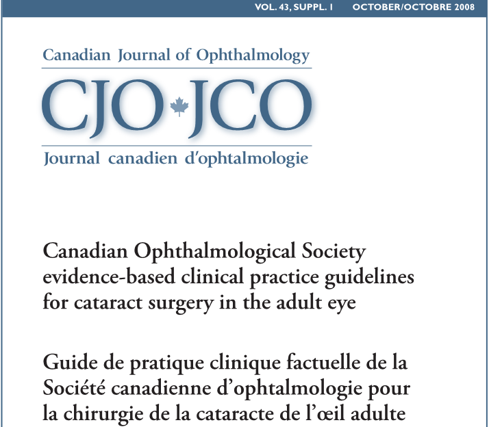 英文标题:Canadian Ophthalmological Society evidence-based clinical practice guidelines for cataract surgery in the adult eye