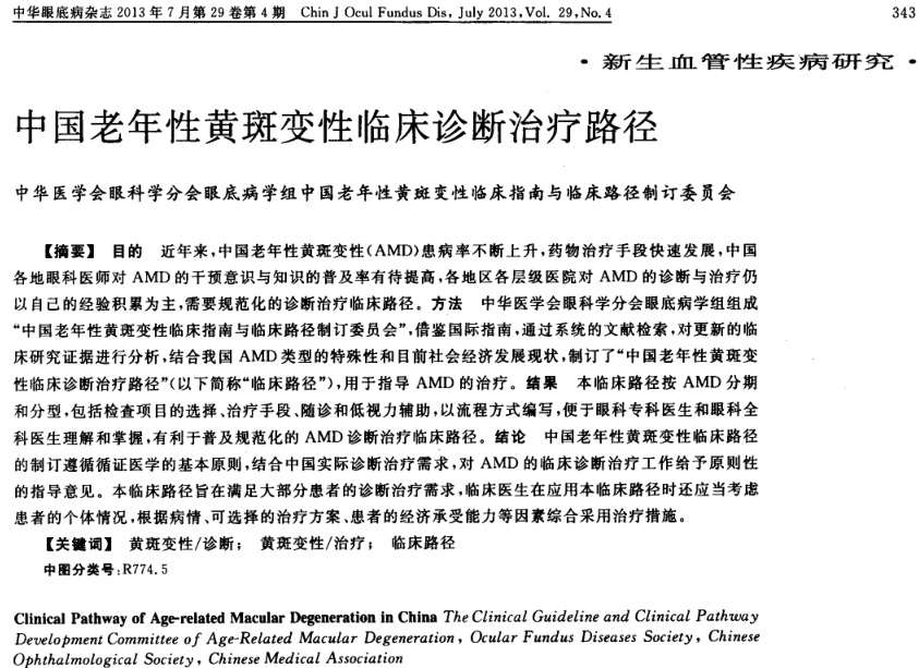 指南下载:2013中国老年性黄斑变性临床诊断治疗路径.pdf