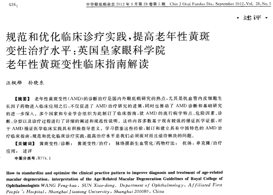 规范和优化临床诊疗实践,提高老年性黄斑变性治疗水平:英国皇家眼科学院老年性黄斑变性临床指南解读
