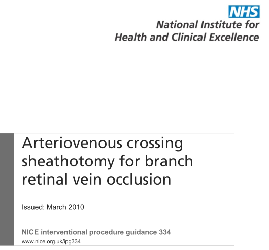 英文标题:2009 NICE Arteriovenous crossing sheathotomy for branch retinal vein occlusion