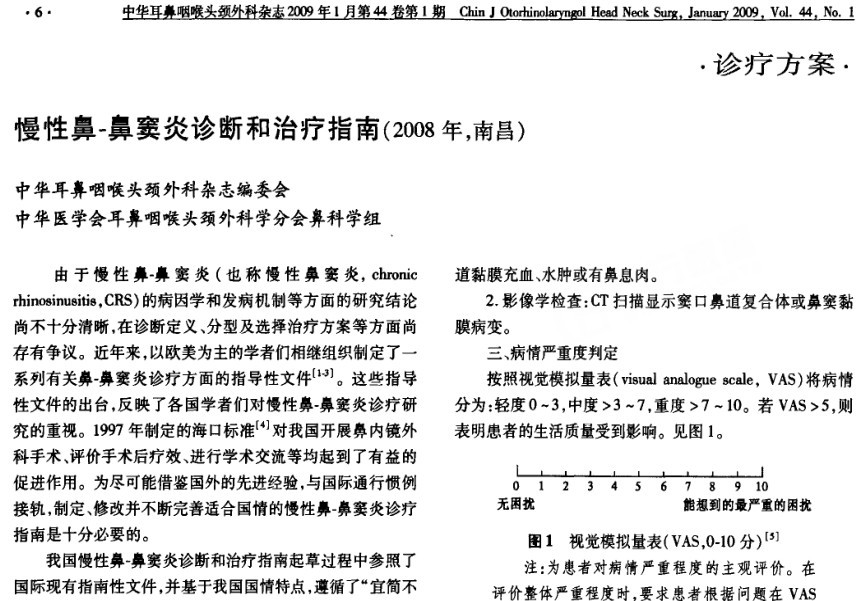 慢性鼻-鼻窦炎诊断和治疗指南(2008年,南昌)发布日期:2009-01-01英文标题:制 定 者:中华医学会耳鼻咽喉头颈外科学分会出 处:中华耳鼻咽喉头颈外科杂志 2009 年44卷01期 指南下载:慢性鼻-鼻窦炎诊断和治疗指南(2008年,南昌).pdf