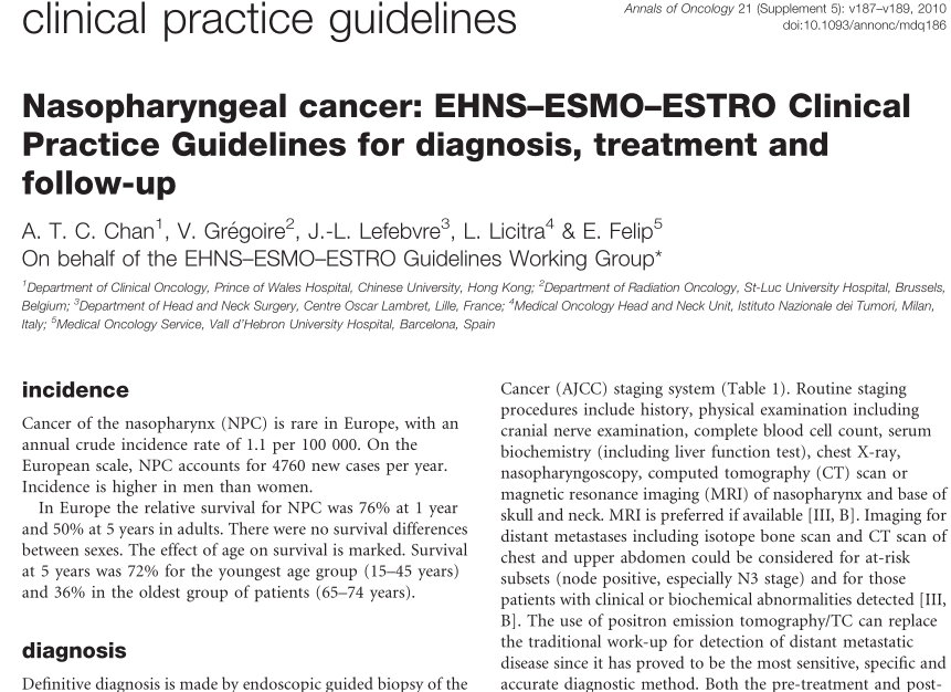 2012ESMO临床实践指南:鼻咽癌的诊断、治疗与随访