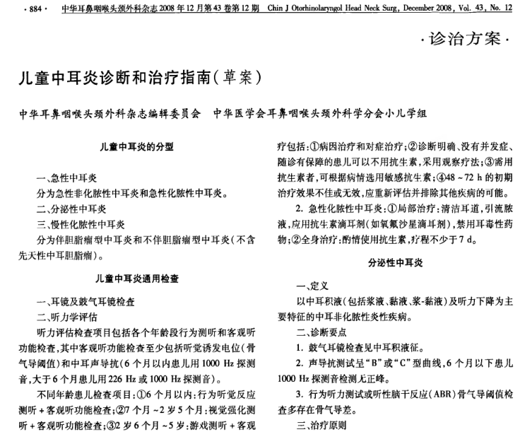 英文标题:Draft of guideline for the diagnosis and treatment of pediatric otitis media