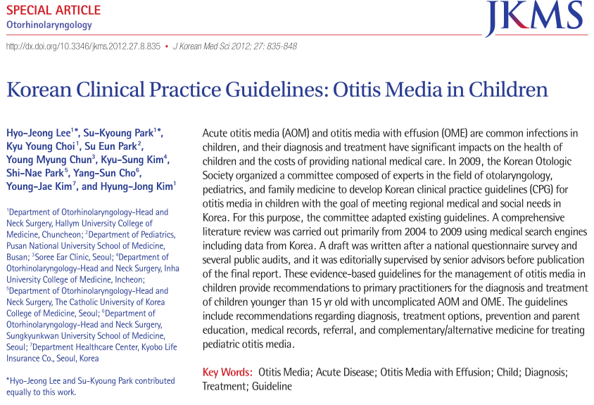 英文标题:Korean Clinical Practice Guidelines: Otitis Media in Children
