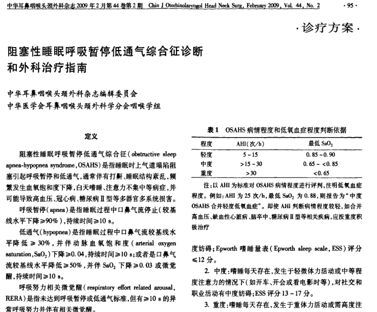 指南下载:阻塞性睡眠呼吸暂停低通气综合征诊断和外科治疗指南.pdf
