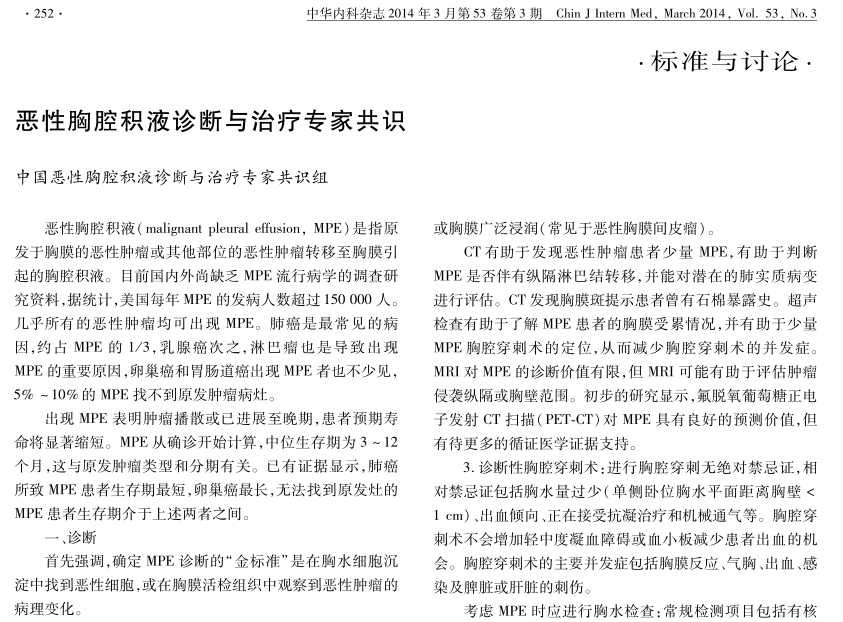 指南下载:2014恶性胸腔积液诊断与治疗专家共识.pdf