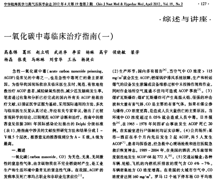 指南下载:一氧化碳中毒临床治疗指南(一).pdf