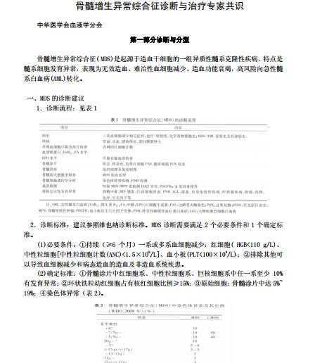 指南下载:2012中国+骨髓增生异常综合征诊断与治疗专家共识.pdf