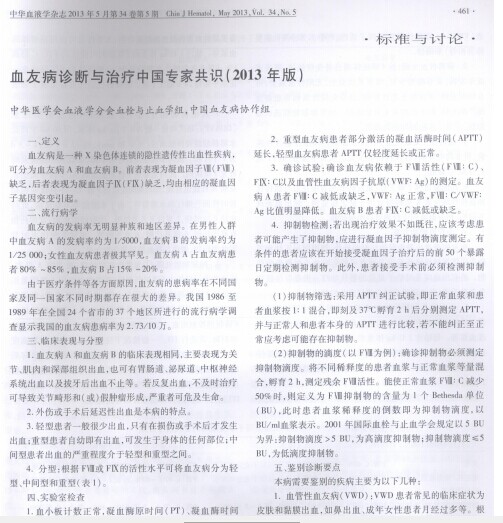 血友病诊断与治疗中国专家共识(2013年版).pdf