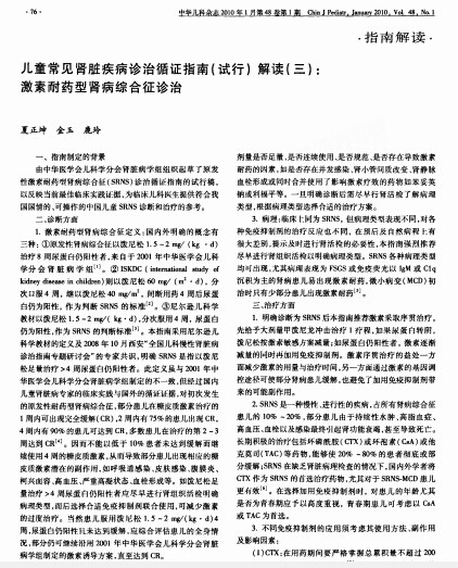 对应指南:2010 中国儿童常见肾脏疾病诊治循证指南(试行)(三): 激素耐药型肾病综合征诊治指南