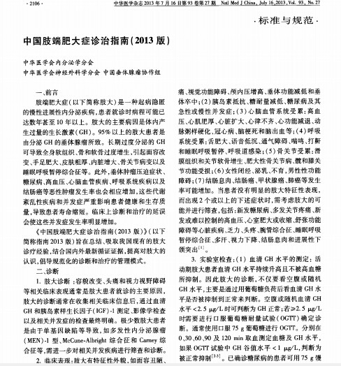 指南下载:中国肢端肥大症诊治指南(2013版).pdf