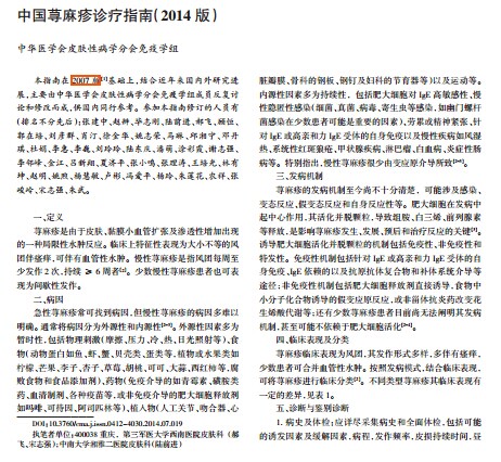 指南下载:中国荨麻疹诊疗指南(2014版).pdf