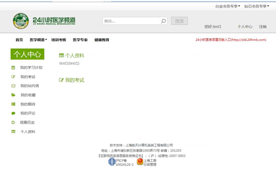 首次使用初始密码登陆后会返回主页面,单击右侧个人中心进入