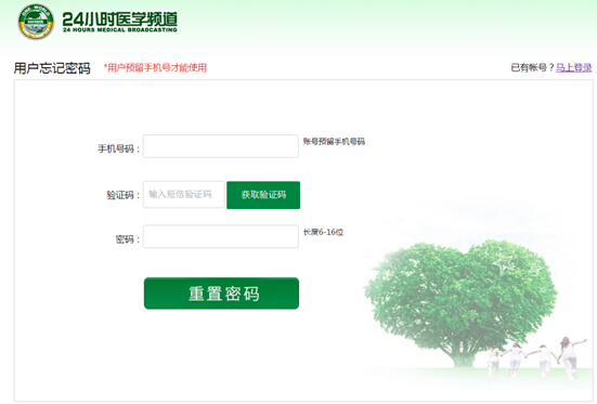 注:如果当时没有留手机号码,并且当时不是以手机号注册的,是无法找回密码的。这样只能联系医院管理员或客服协助重置密码。
